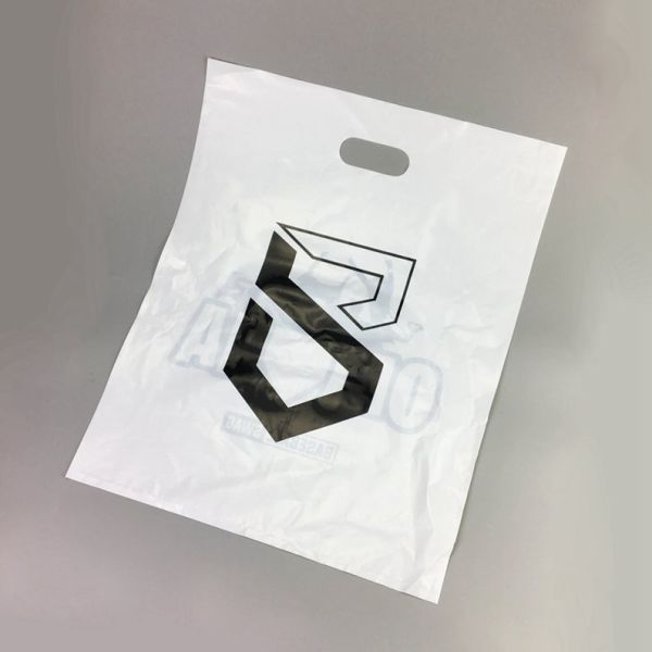 9x14 White Black Die-cut handle mailing bag, Plastic handle carry bag. poly handle shopping bags Images |